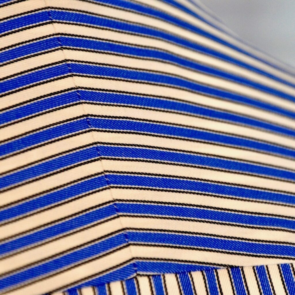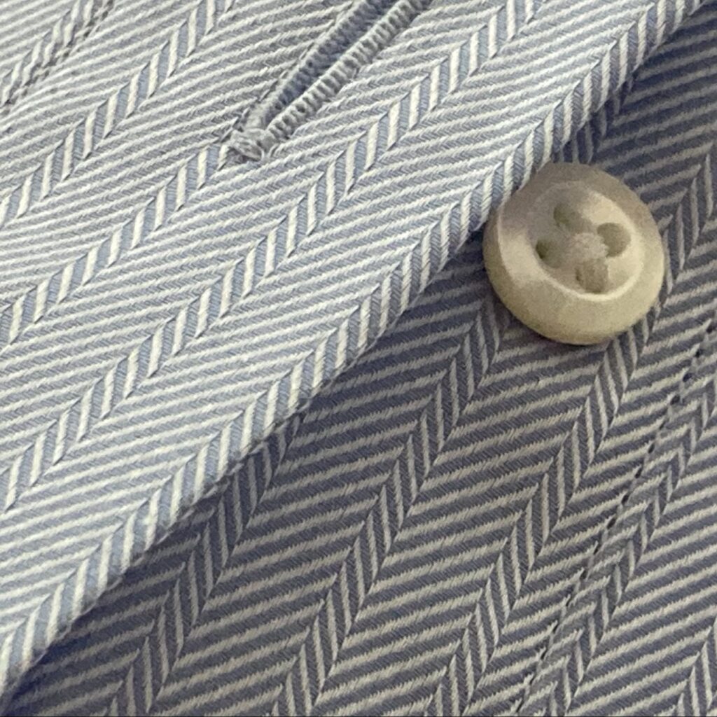 Der schräge Abschluss auf der Innenseite der Knopfleiste ist ein verstecktes Detail. Es sieht nicht nur schön aus sondern trägt nicht unangenehm auf.