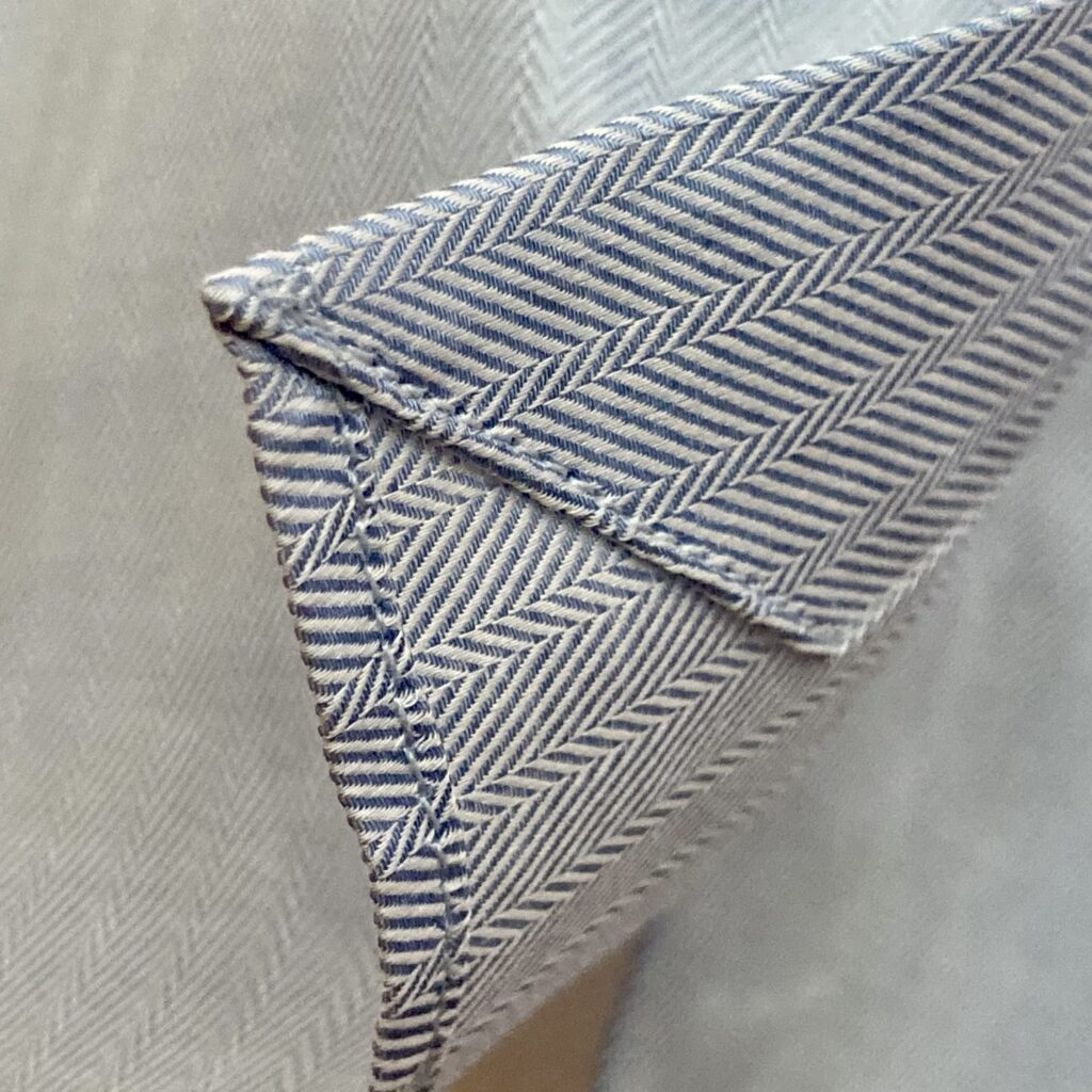 Die Saumnaht – leicht und nicht auftragend, ein wertvolles Detail für hochwertig verarbeitete Herren Hemden.