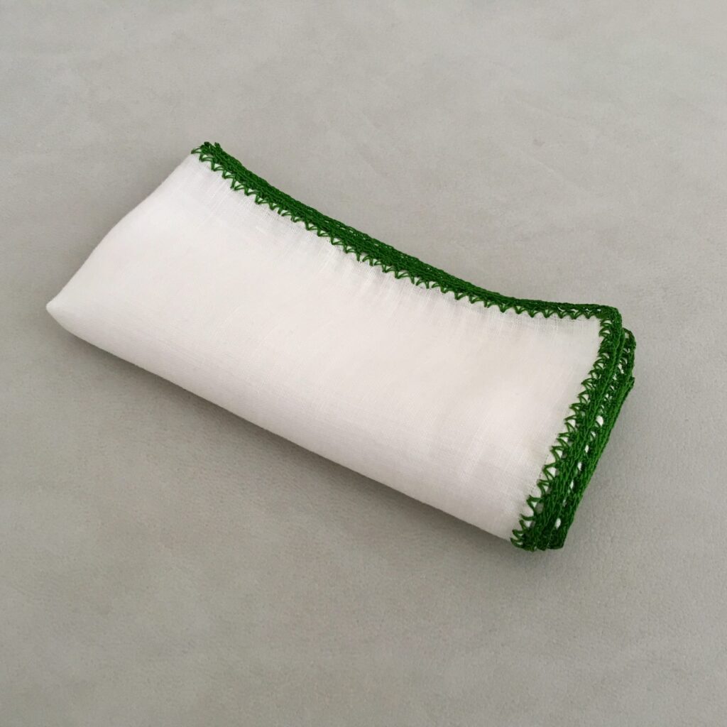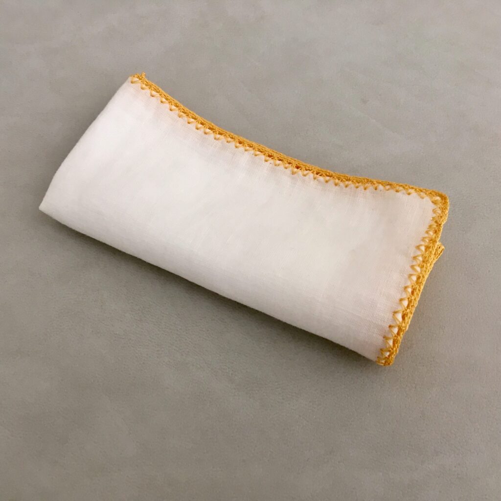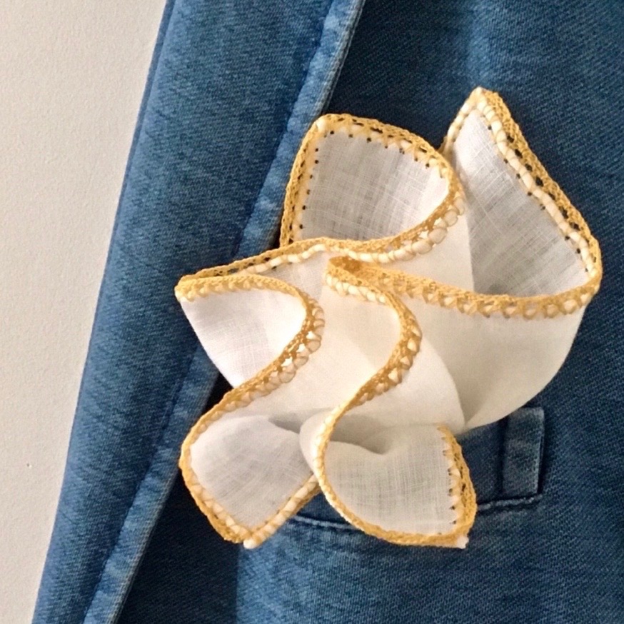 In der Region Apulien, Süditalien geniesst das Häkeln auch heute noch hohes Ansehen. In kleinen Ateliers oder auch in Heimarbeit entsteht das filigrane Armband und die klassische Ansteckblume für’s Jacket. Ausserdem werden feinste Einstecktücher nach bewährter Handarbeit bestickt und veredelt.